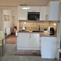 Kettő jól felszerelt apartman, áll egész évben vendégeink rendelkezésére. A tetőtéri apartmanban egy háló szoba, egy nappali, egy étkező, konyha, és egy fürdőszoba került kialakításra. Hozzá tartozik egy 10 m2-es terasz, ahol pihenés mellet gyönyörködhetnek vendégeink az eléjük táruló panorámában is. A különálló apartmanban található kettő hálószoba, egy konyha, nappalival és egy fürdőszoba. Természetesen ehhez is kapcsolódik egy terasz, ahol a forró napok után kellemesen felüdülhetnek. A nappalikban televízió nyújt szórakozási, kikapcsolódási lehetőséget, az ingyenes Wifi kapcsolaton keresztül elérhető - internetezési lehetőség mellett. A konyhák felszereltsége: kétzónás esztétikus kerámia főzőlap, hűtőszekrény- mélyhűtő résszel, mikrohullámú sütő, kenyérpirító, vízforraló és kávéfőző. A Kisfaludy pályázatnak köszönhetően komfortosabbá tettük az apartmanokat. Ugyanis a forró nyarak elviselésére légkondicionáló berendezések kerültek felszerelésre.